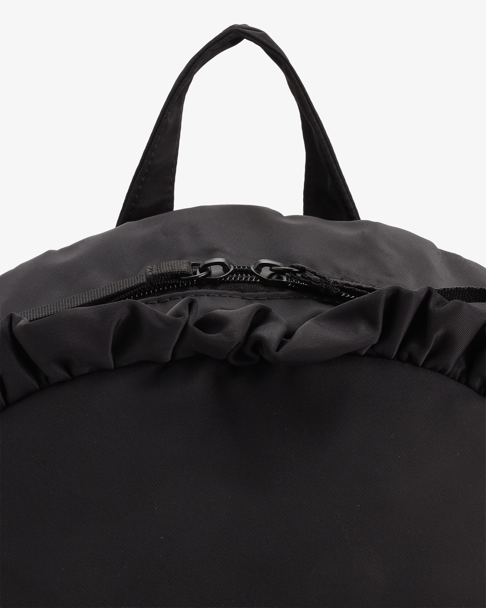 ころんとしたフォルムのバックパック。フロントのポケットはロゴ入りで、くしゅっとしたリボン紐がかわいいデザインポイント。ボーイッシュにまとまりがちなアイテムながら、可愛らしいムード満点のアイテムです。