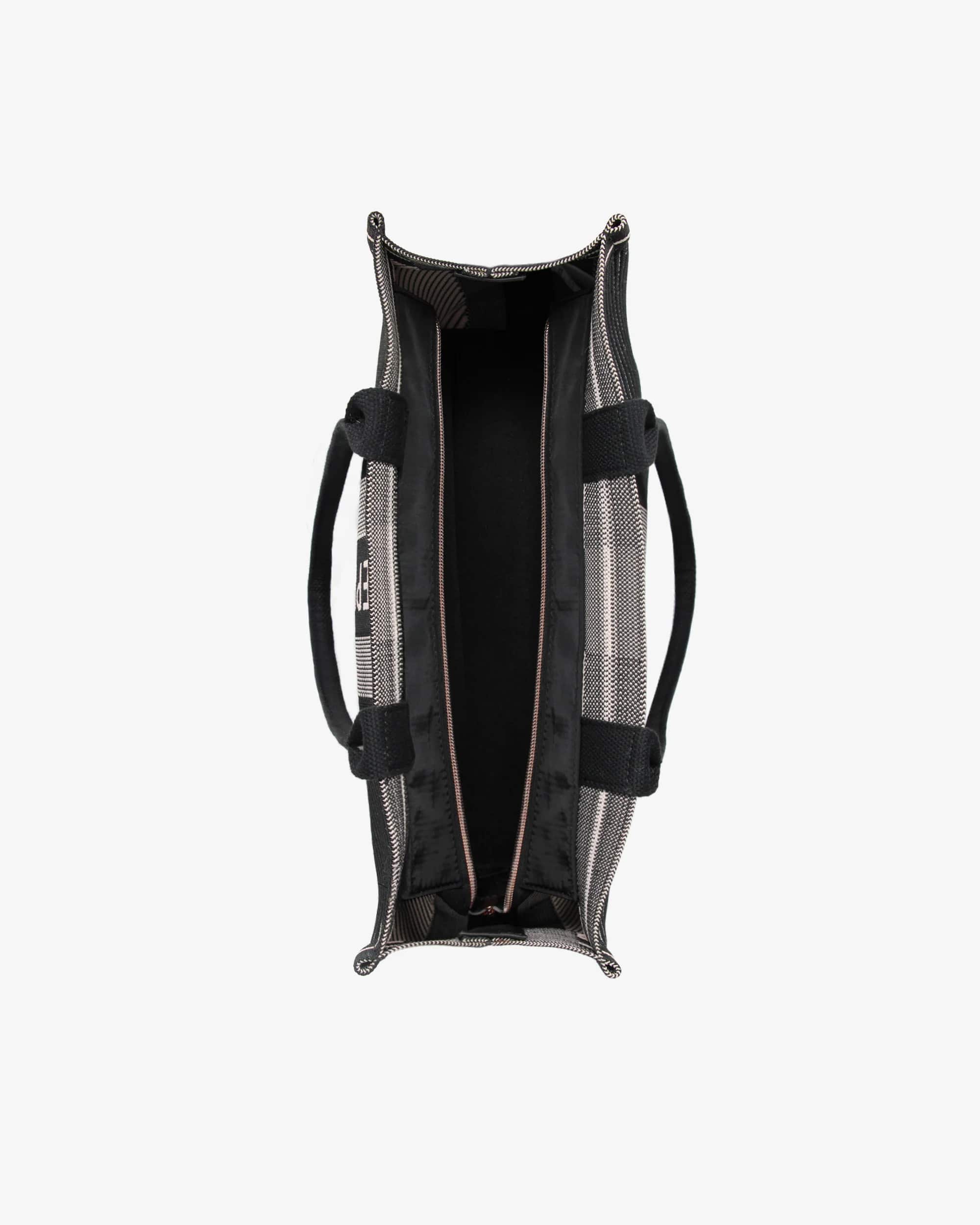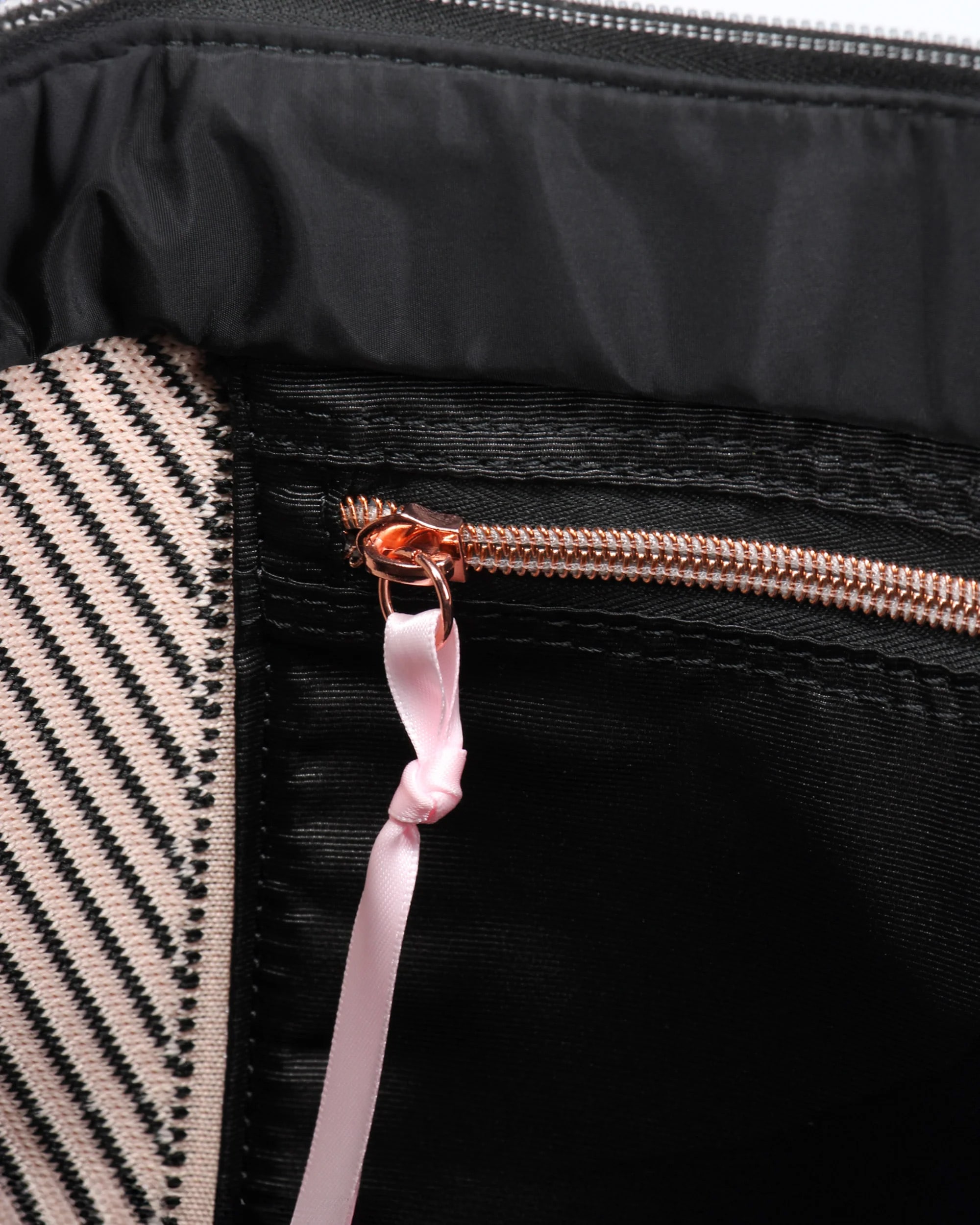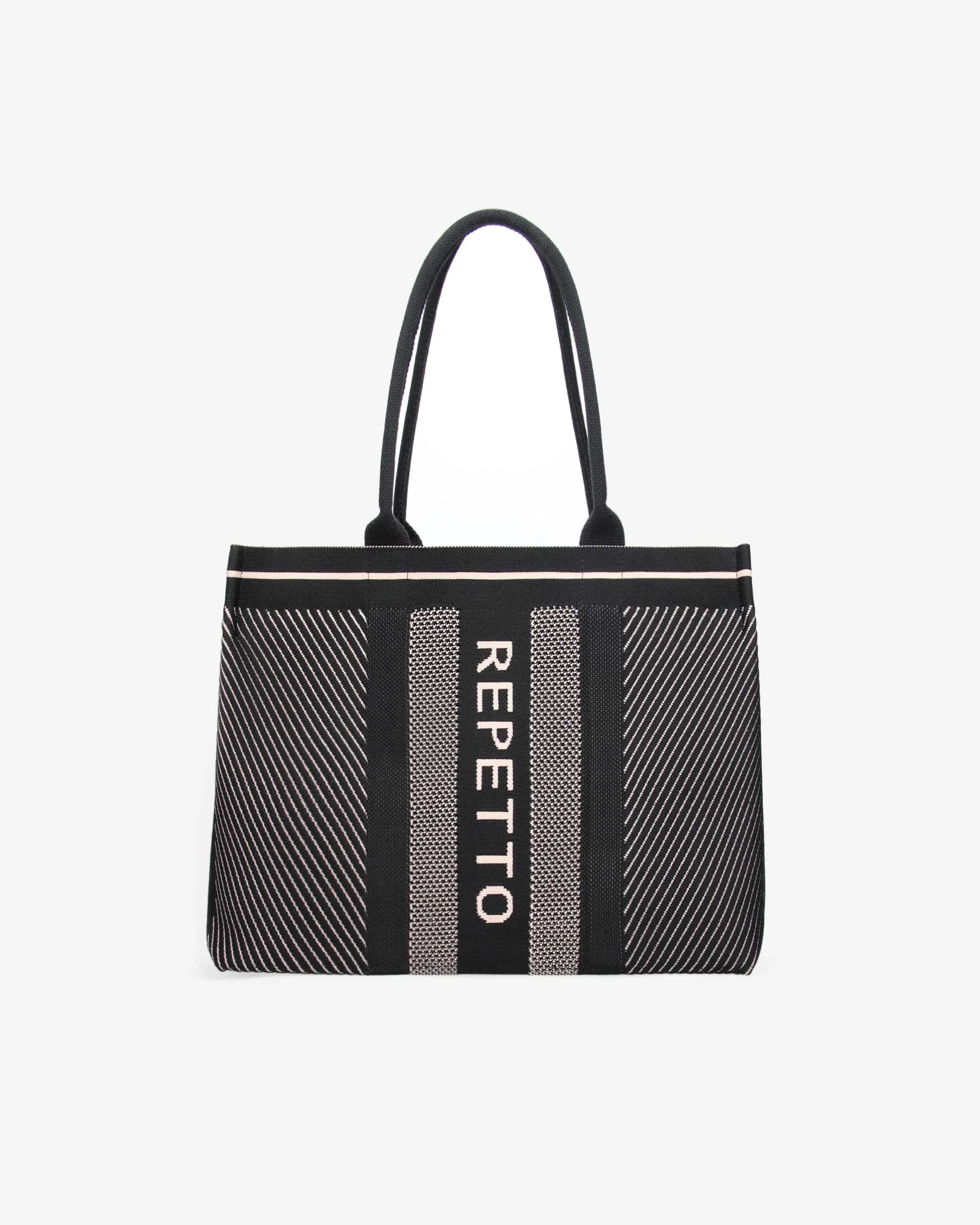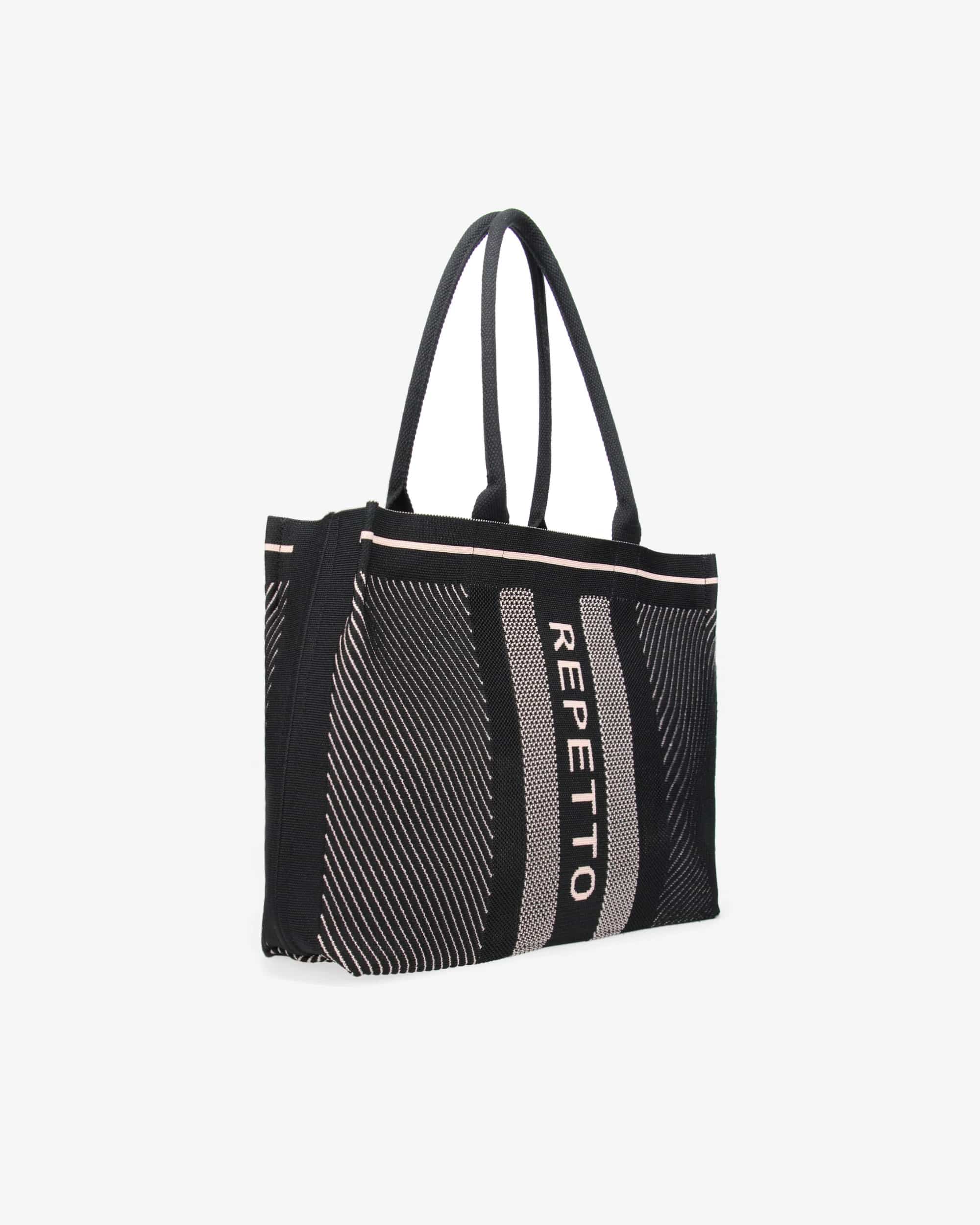 モダンな編み柄とブランドロゴが印象的なトートバッグ。丈夫で軽やかな布地を用い、マチ幅のあるスクエア型にデザイン。ファスナー式の間口や内ポケット、長めのハンドルなど機能面も優秀。日常からレッスンまで幅広いシーンにお使いいただけます。