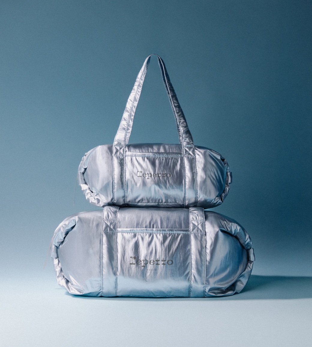 バレエダンサーのワードローブの象徴であるダッフルバッグは、MとLの2サイズ。ダンスに必要なものを収納できる実用的なフォルムや、肩掛けが可能な大きなハンドル。ダンサー一人ひとりのスタイルに寄り添う実用性とエレガンスを兼ね備えたデザインが魅力です。
