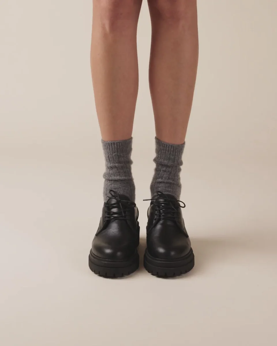 ボリュームのあるチャンキーソールが存在感を発揮するダービーシューズです。張り出したコバなどのディテールが足元にマニッシュな印象を与えてくれます。トレンドに左右されることなく長くご愛用いただける1足。