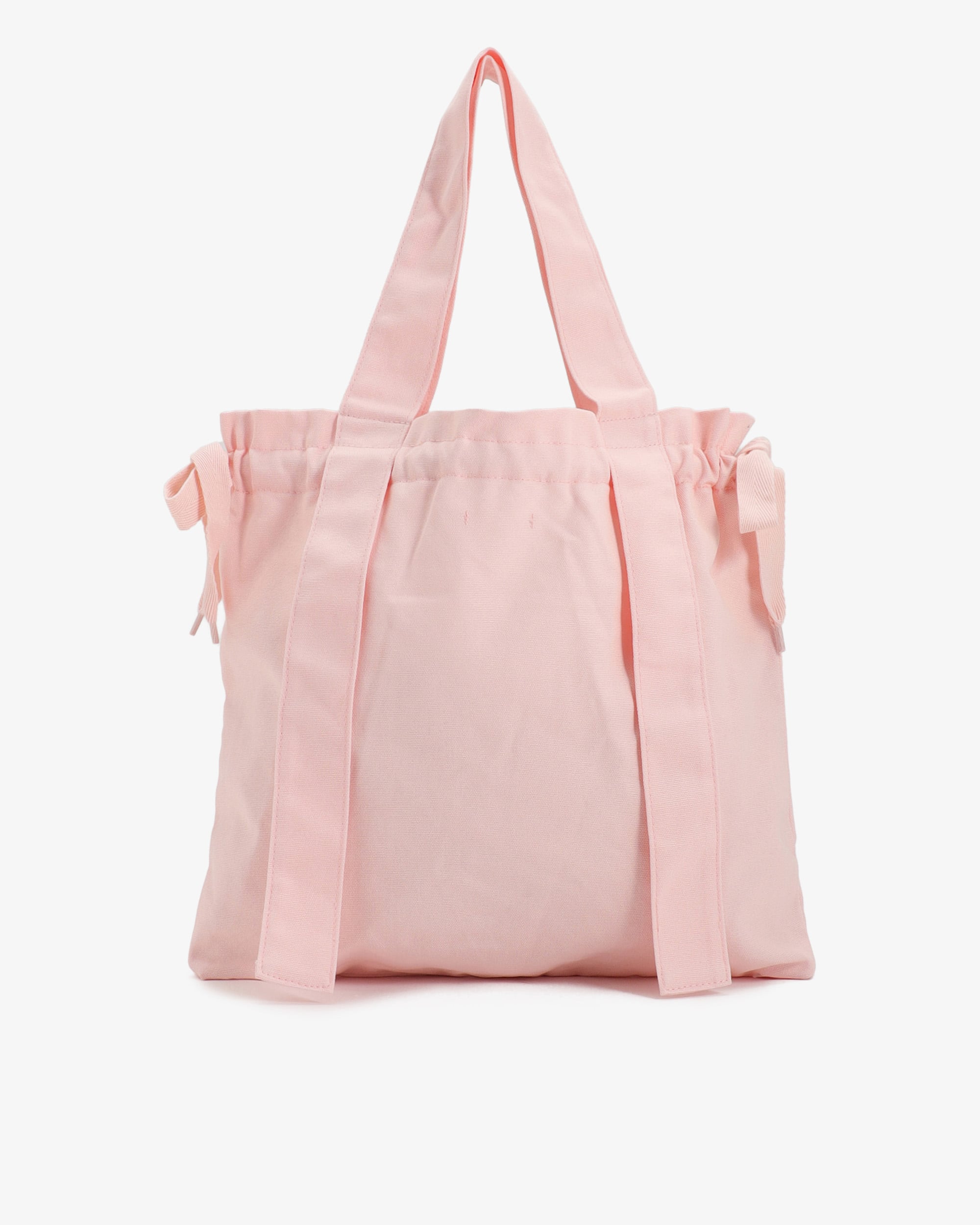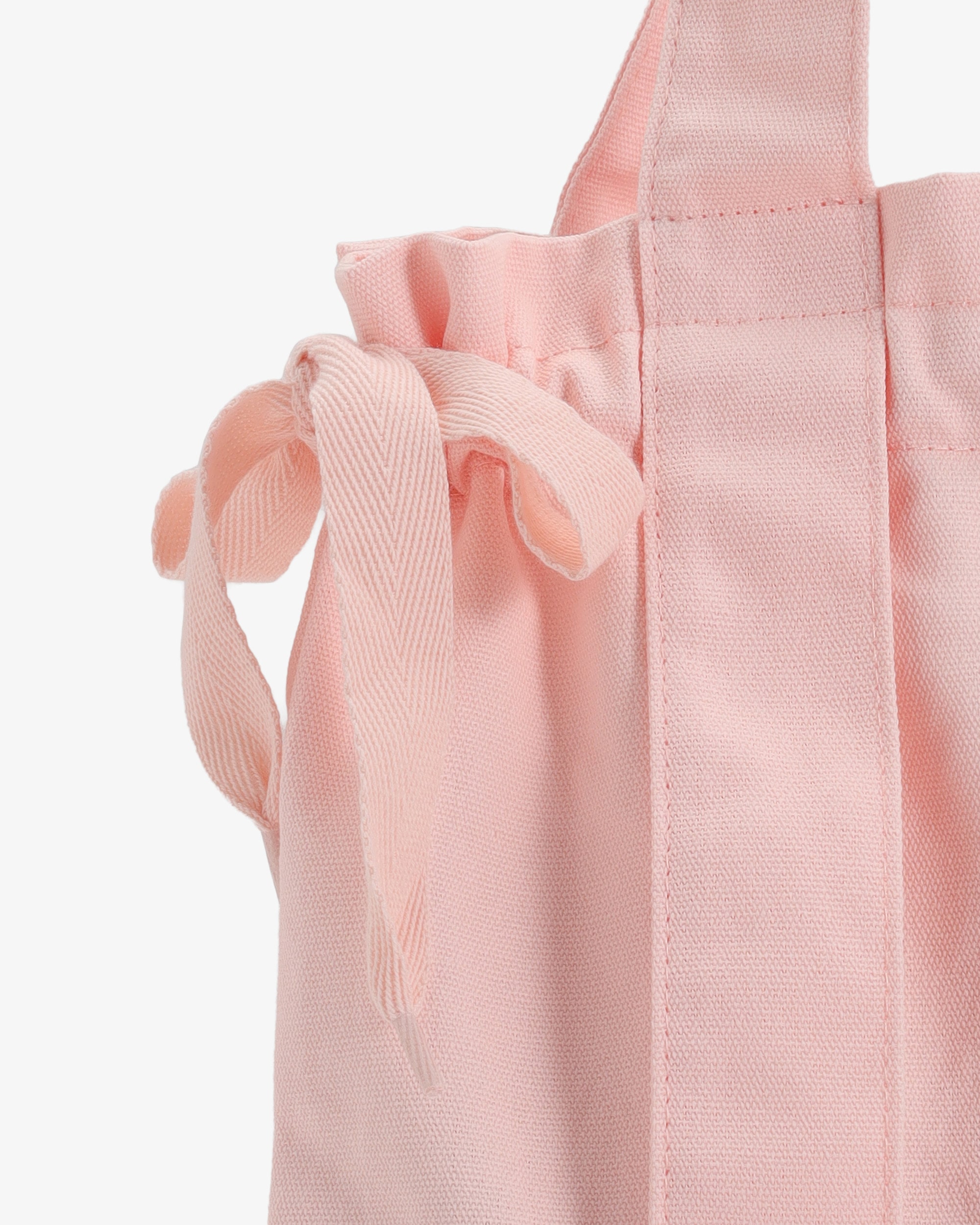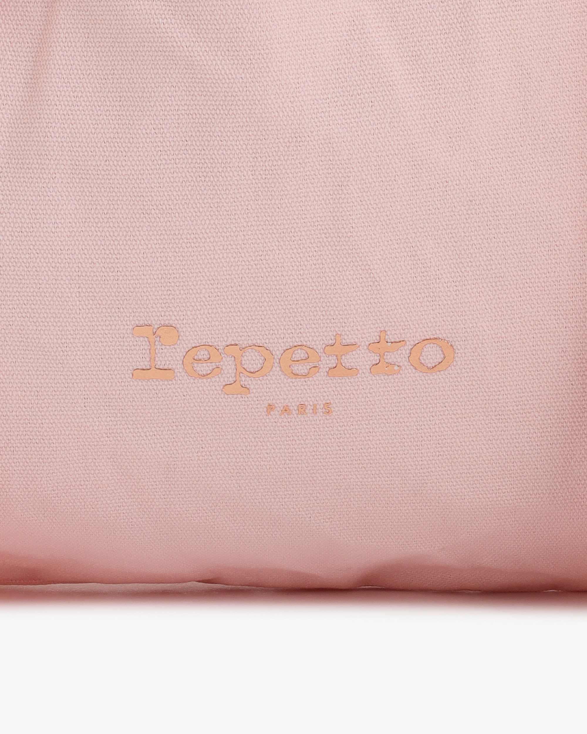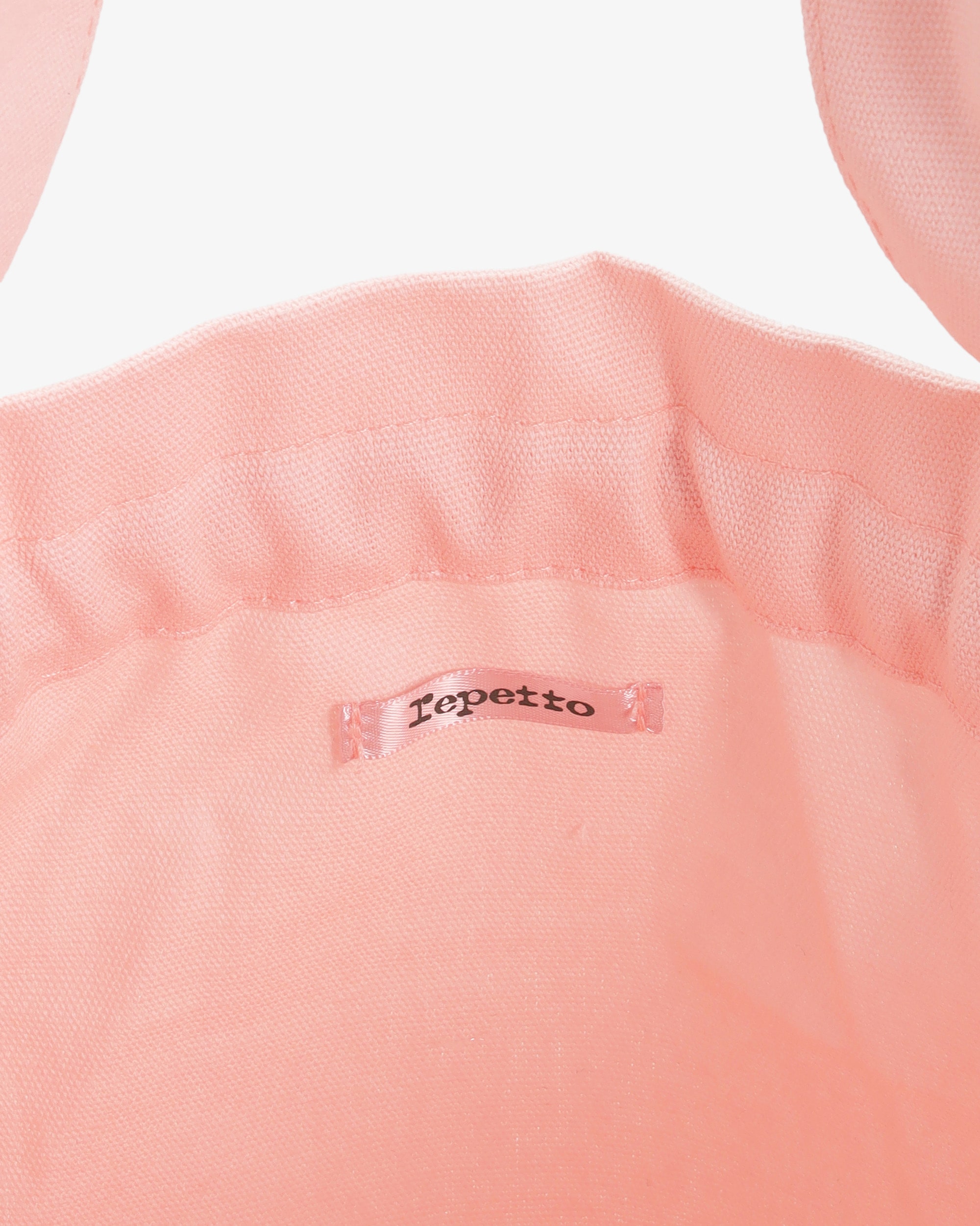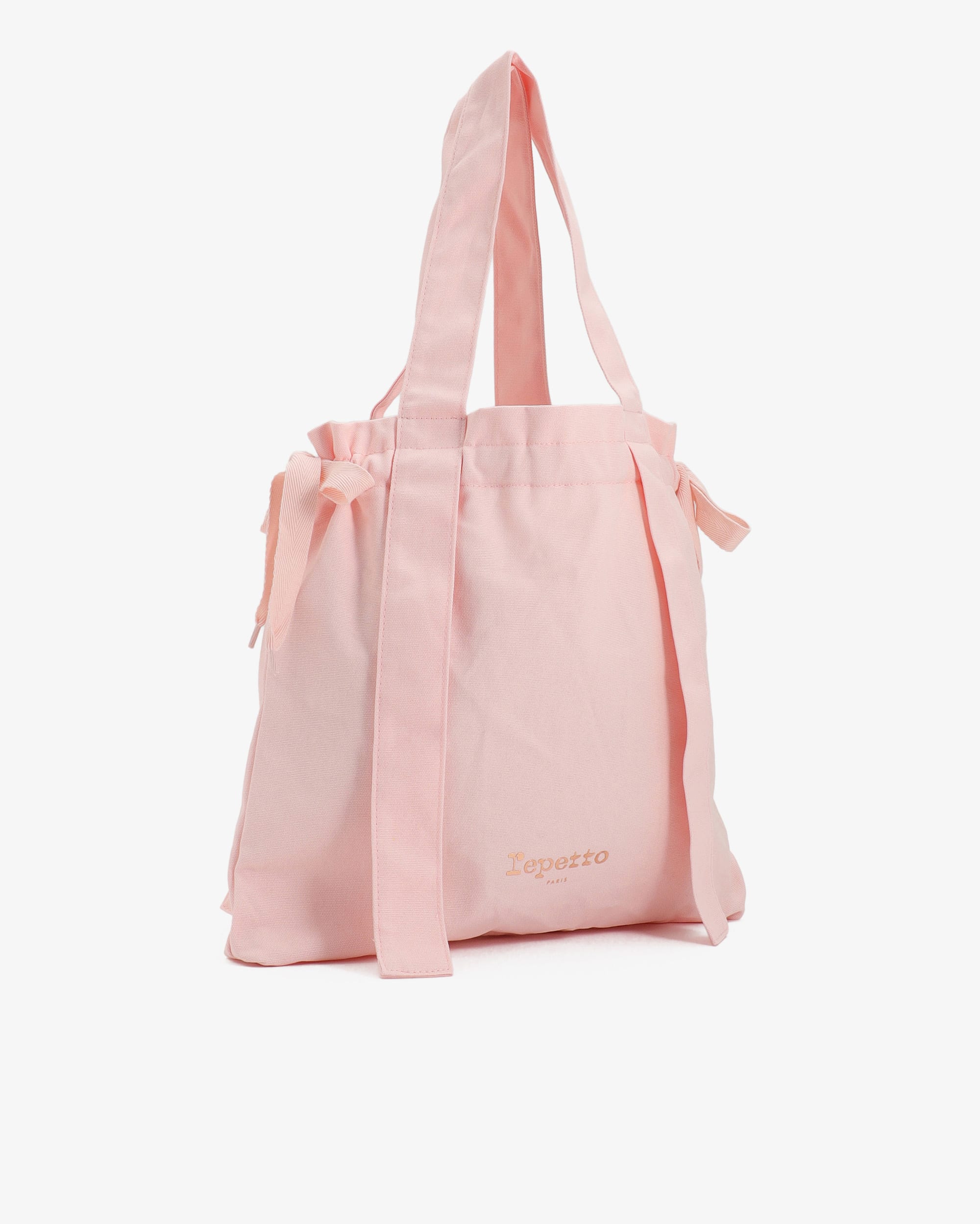 サイドリボンと長めのストラップが愛らしい、巾着仕様のトートバッグ。ソフトで軽量なキャンバス生地を使用し、フロント下部にはワンポイントのRepettoロゴを配置。日常からレッスン用、サブバッグにと幅広くお使いいただけるアイテムです。