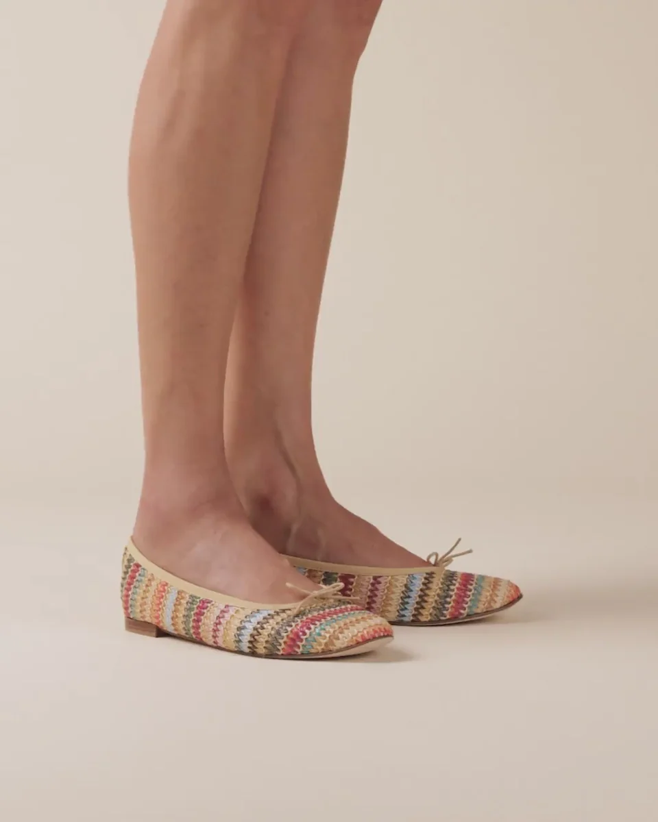 ナチュラルな素材感で軽やかに仕上げた Cendrillon バレエシューズ。カラフルで華やかなデザインが春夏シーズンにぴったり。アッパーにあしらわれた小さなリボンが愛らしいワンポイントに。デニムスタイルからリゾート風ワンピーススタイルまで幅広いコーディネートに合わせていただけます。