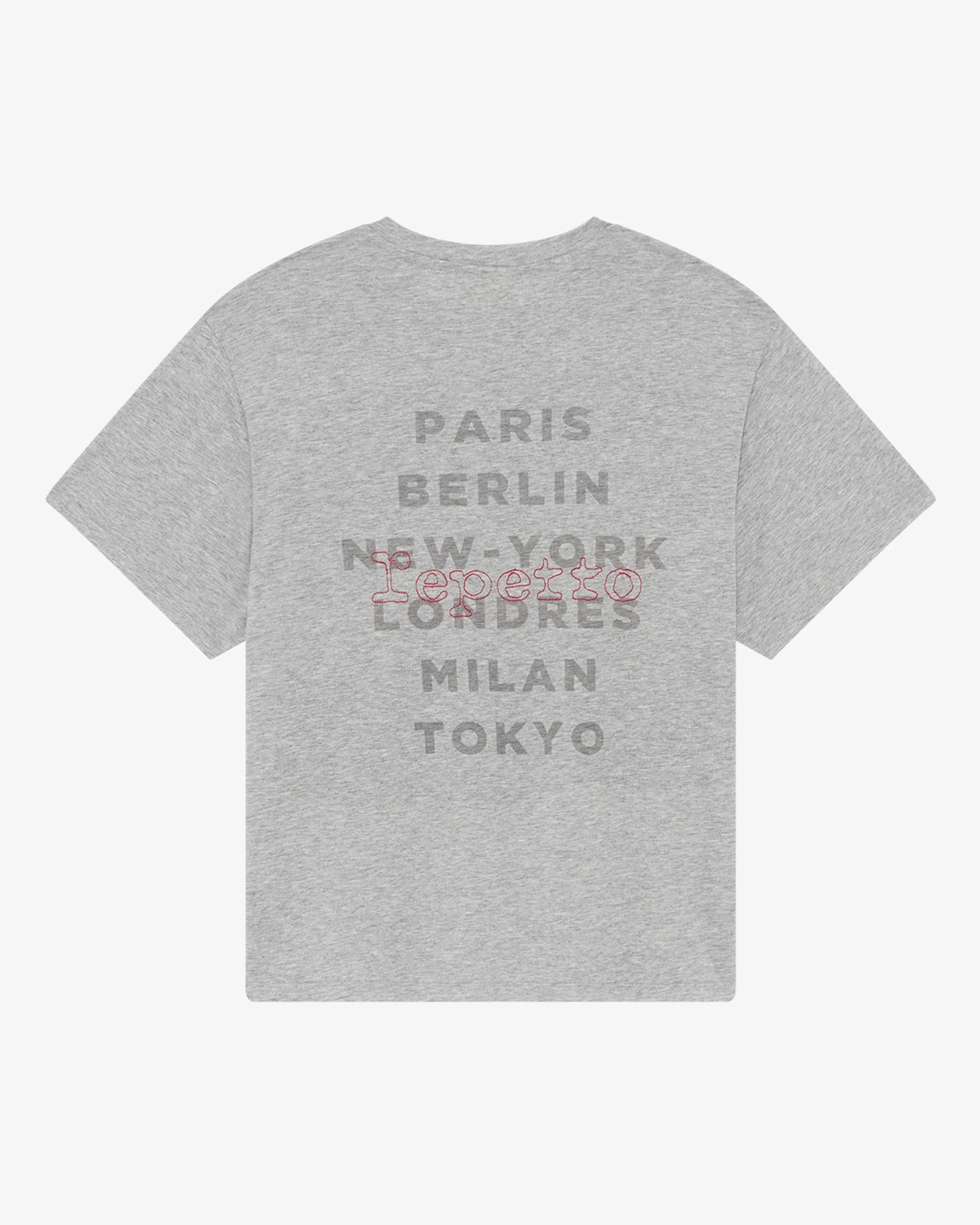 さまざまな都市名とブランドロゴをあしらったバックが印象的なTシャツ。2種類のフォントを組み合わせた、奥行きを感じられるデザインです。フロントはロゴ入りタグをワンポイントに、シンプルにまとめています。